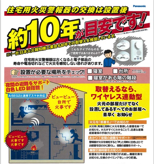 わが家の警報器は古いかも?と、気になるお客様はご連絡ください。