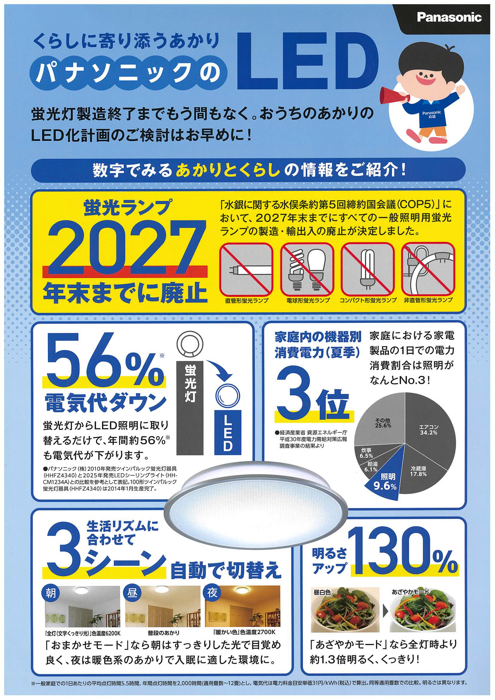 今、蛍光ランプをご使用の方は、LED照明にしてみませんか?