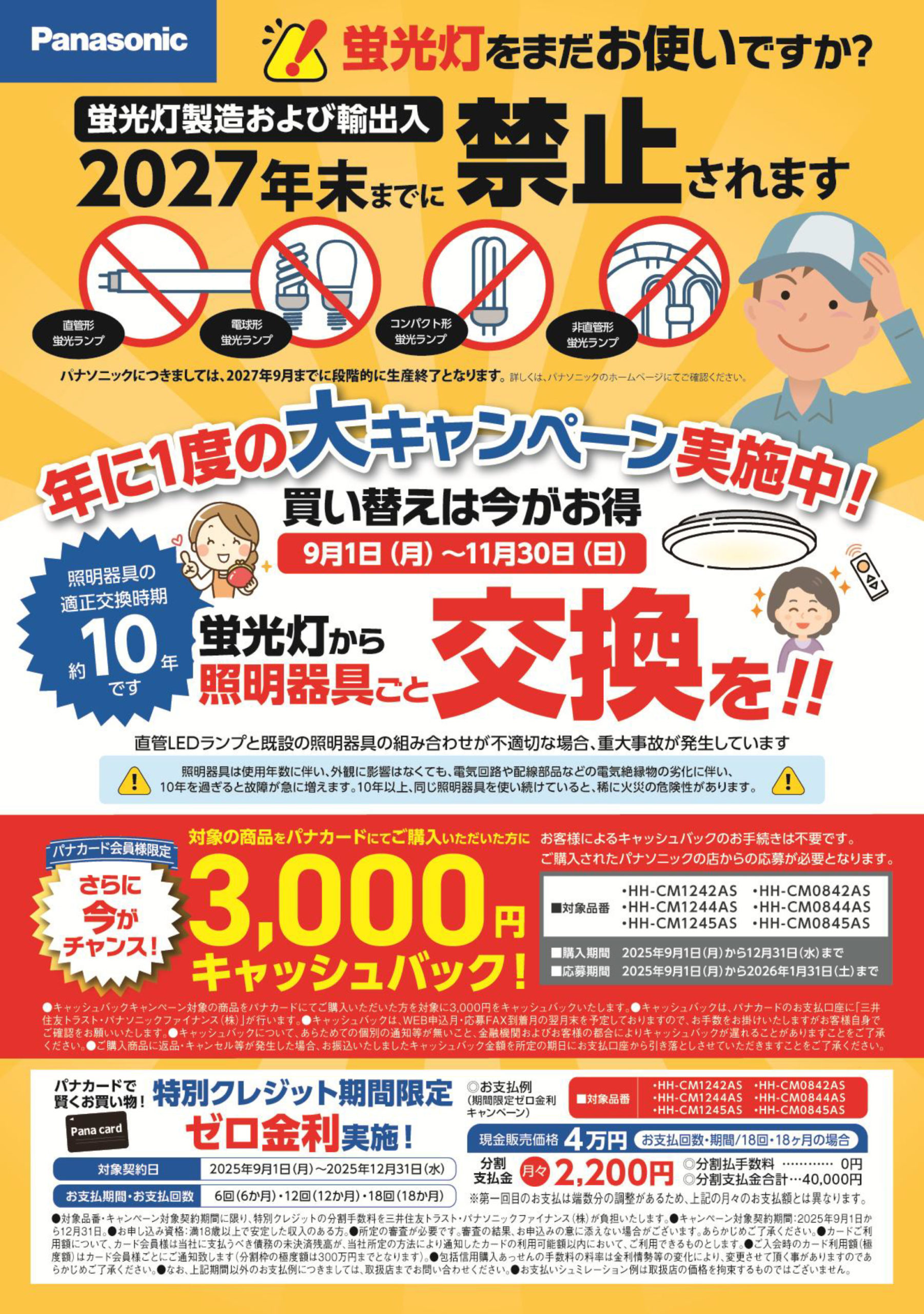 対象商品をパナカードにてご購入いただいた方に3,000円キャッシュバック!
